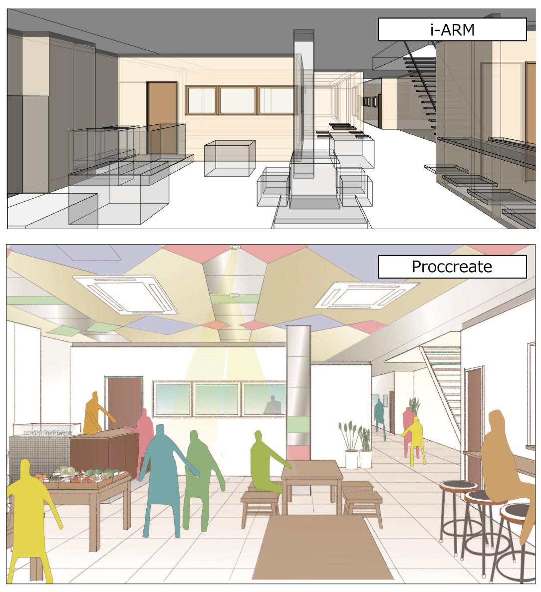 先ほどお話し頂いた「「i-ARM」でイメージをつかみ、そのパースを下絵としてiPadアプリ「Procreate」で仕上げる」という一連の流れについて、