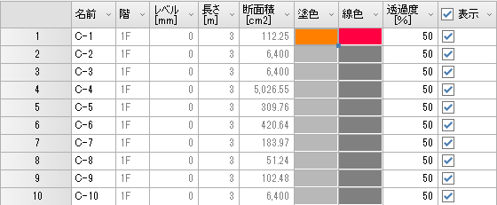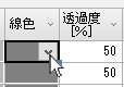 色用のセルです。 カラーダイアログを表示して色を選択します。 |