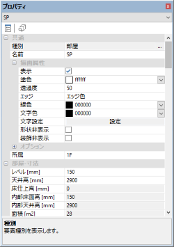 プロパティオブジェクトの入力、編集コマンド実行時やアイドル状態でのオブジェクト選択時に 関連するコマンドやプロパティを表示します。 |