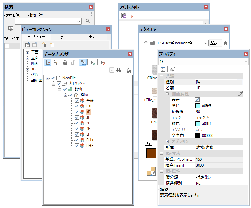 | ドッキングウィンドウの種類 | 表示・非表示 | 操作 |