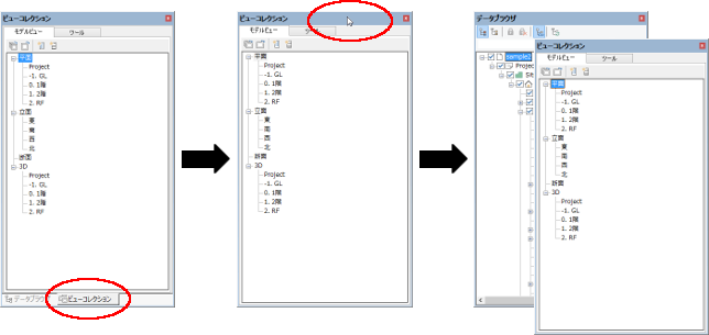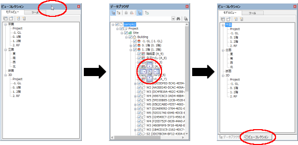 ビューコレクションメインビューに表示可能なビューの表示や、ビューの表示変更などの 操作を行います。 |