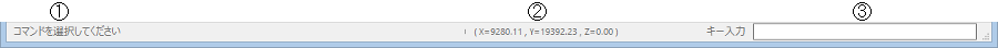ステータスバーには、コマンドメッセージやカーソル位置の座標値などの情報が表示されます。