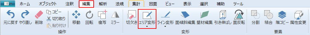 スラブや部屋、ポリゴン、ポリラインを対象とした形状編集を行います。