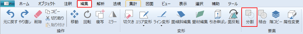 ※2 分割の対象となる要素は、部屋、ゾーン、スラブ、壁、梁、床、天井、用途地域、注釈図形です。