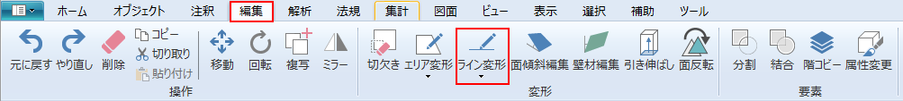 リボンメニュー[編集]→[ライン変形]