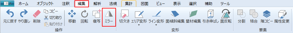 リボンメニュー[編集]→[ミラー]