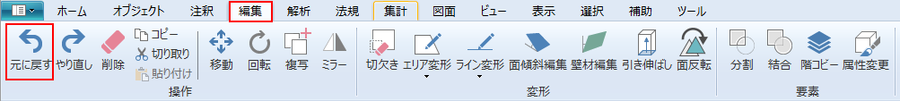 直前に行った操作(入力・編集等)を元に戻します。