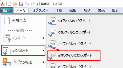 リボンメニュー[エクスポート]→[glTFファイルのエクスポート]