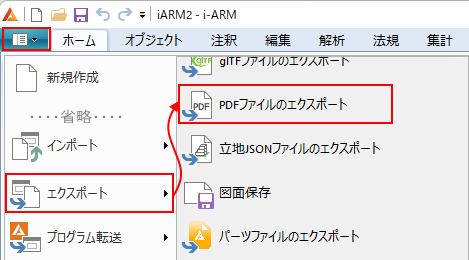 リボンメニュー[エクスポート]→[PDFファイルのエクスポート]
