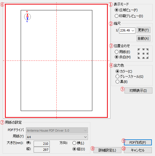 [詳細設定]ボタンをクリックすると、PDFエクスポートダイアログが表示されます。