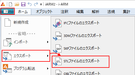リボンメニュー[エクスポート]→[STLファイルのエクスポート]