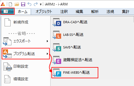 リボンメニュー[プログラム転送]→[FINE-WEBSへ転送]
