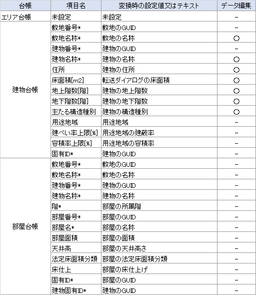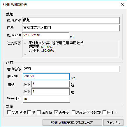 FINE-WEBSのBIMインポート用の建物台帳CSV・部屋台帳CSVが出力できます。