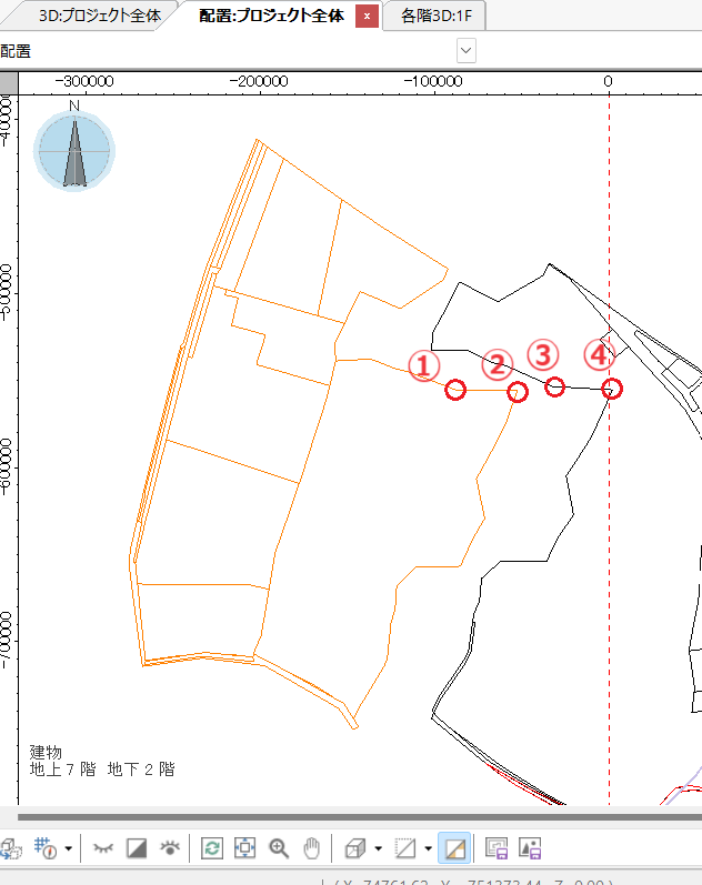 次に移動先の線分(2点)を指定すると、移動が完了します。