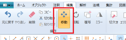 リボンメニューの「編集」- 「移動」コマンドを実行します。