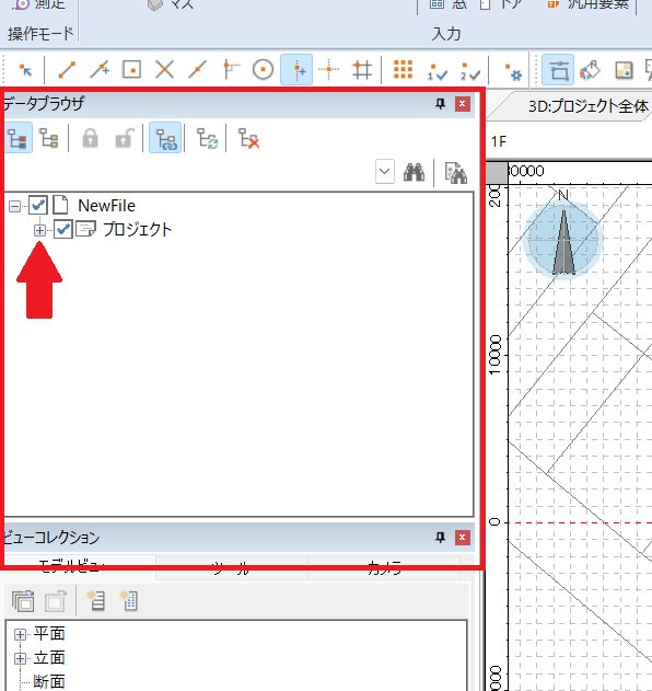 インポート完了したら、画面左側「データブラウザ」の