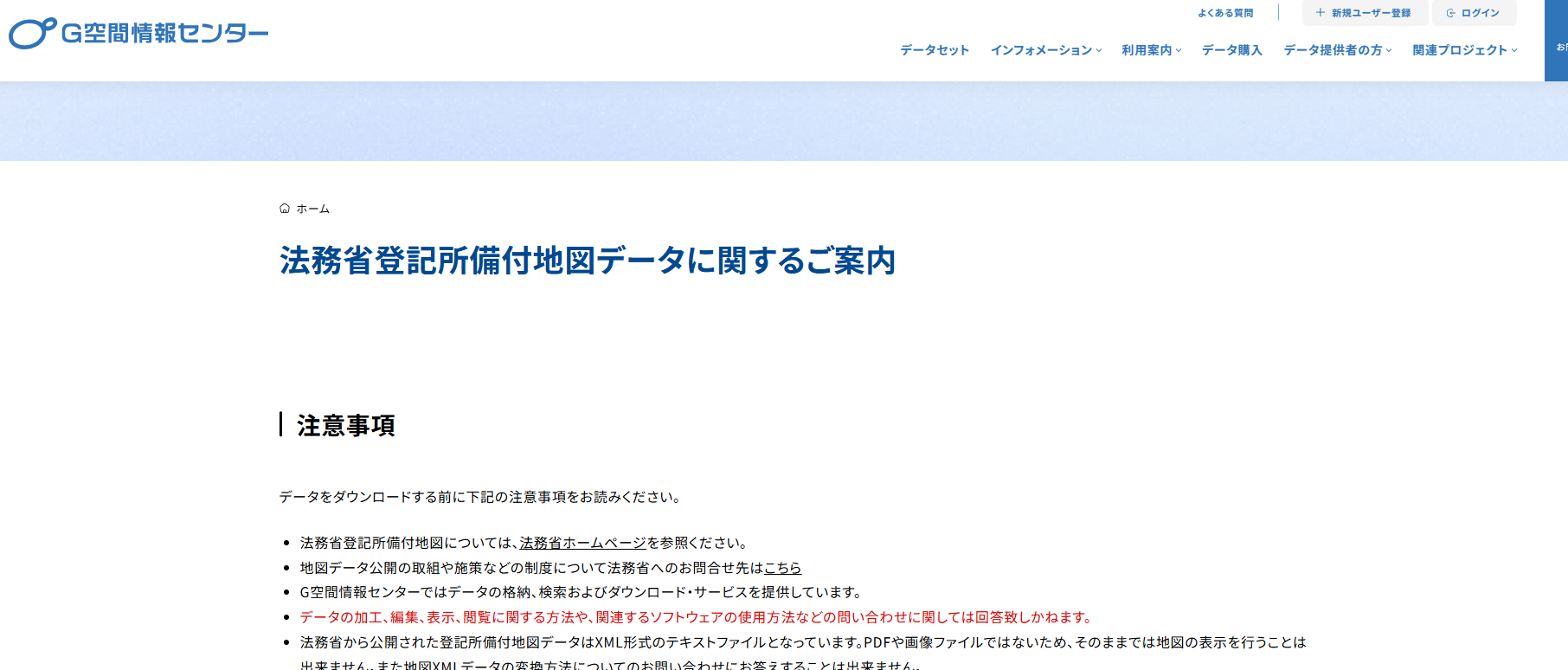 G空間情報センターの「法務省登記所備付地図データに関するご案内」をお読みいただき、