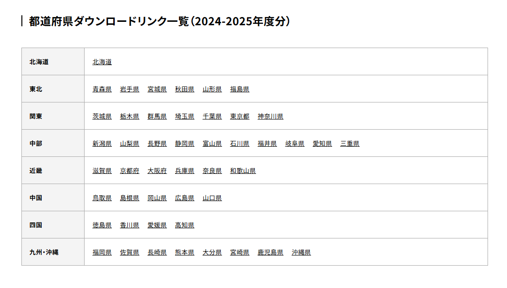 都道府県ダウンロードリンク一覧