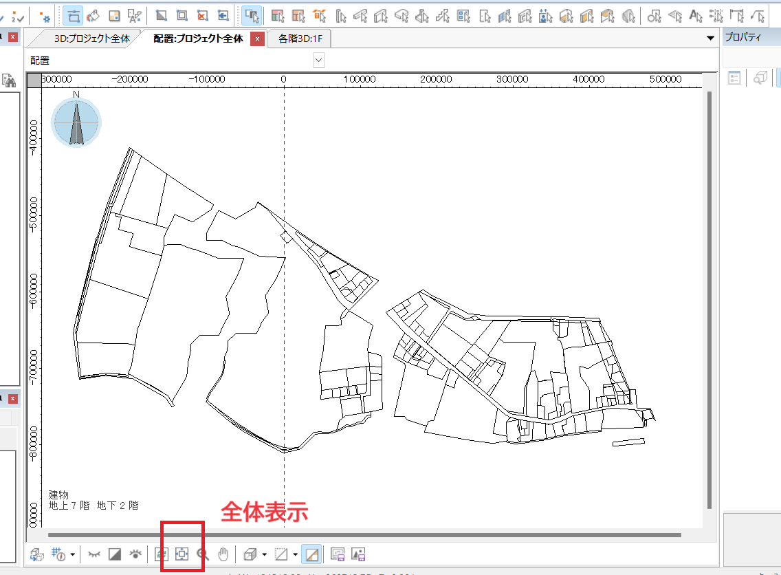 読込が完了したら画面下の「全体表示」ボタンで、地図データが確認できます。