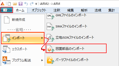 ファイルメニュー→[インポート]→[図面部品のインポート]