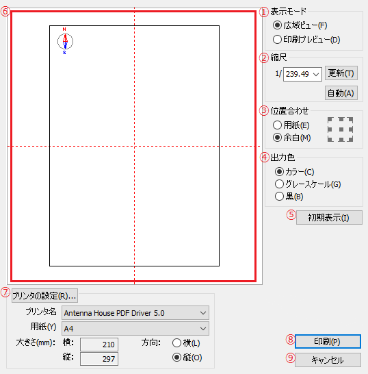 印刷時の線色やレイアウト、使用するプリンタを設定し、印刷を行います。