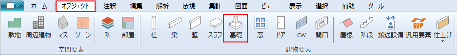 リボンメニュー[オブジェクト]→[基礎]