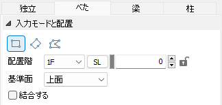 入力時の配置基準を壁材の進行方向左/中央/進行方向右から選択します。