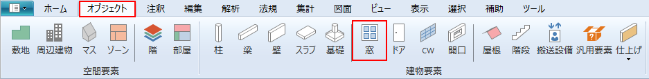 リボンメニュー[オブジェクト]→[窓]