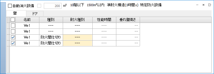 壁の種別、耐火種別、性能時間を設定し、指示した壁に属性を追加します。