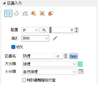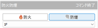 「防火」「防煙」ボタンで防火区画と防煙区画のどちらを入力・判定するかを選択します。
