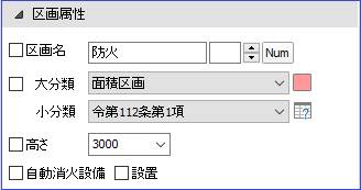 指示した防火防煙区画の名前、区画種別、塗色、高さなどの属性を変更します。