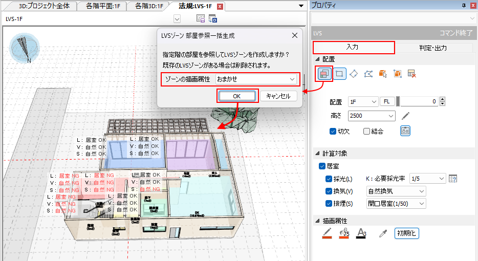(部屋からゾーン一括生成)でゾーンを生成します。