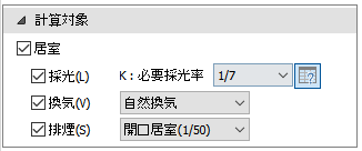 ※居室にチェックを入れると、採光・換気・排煙すべてを計算対象とします。