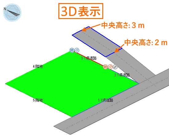 敷地境界線に突き当たる道路の中央の高さを入力します。