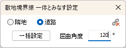 道路:指定した屈曲角度以上で連接する道路を一体とみなす設定にします。