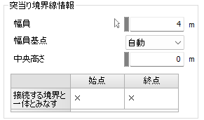 境界線種別で「道路:突当り」を指定した場合の各種設定です。