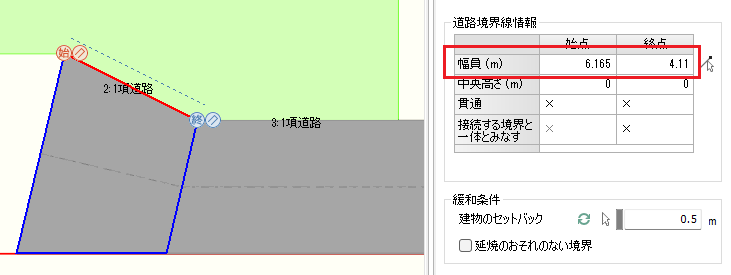 敷地境界線に突き当たる道路の幅員を入力します。