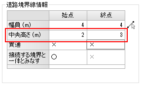 道路中央の高さを入力します。
