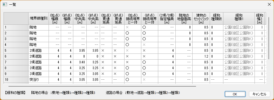 各境界線ごとに境界線種別や緩和条件などを設定します。