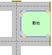 "隅切り"は接続する境界線の両側が道路境界線(1項道路/2項道路/3項道路/隅切り)でなければ設定できません。