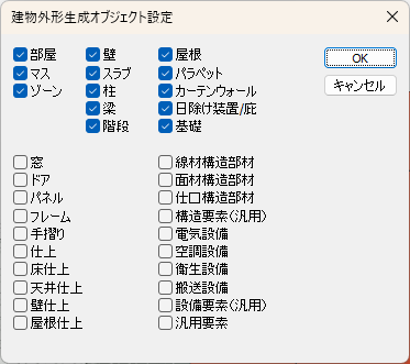 下記の条件を満たしたオブジェクトを元に計画建物モデルを生成します。