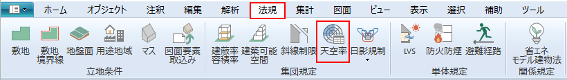 リボンメニュー[法規]→[天空率]