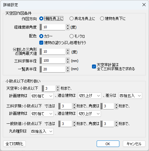 計算に必要な計画建物モデルを作成するための設定です。天空率計算は計画建物モデルをもとに計算されます。
