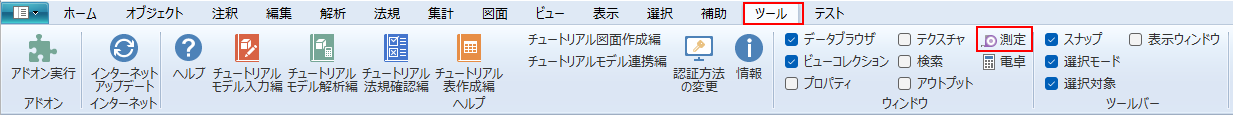 リボンメニュー[ツール]→[測定]
