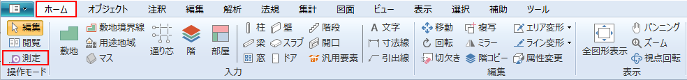 リボンメニュー[ホーム]→[測定]