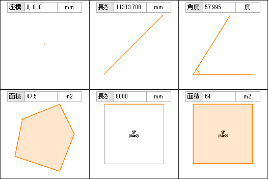 座標、長さ、角度、面積などの測定を行います。