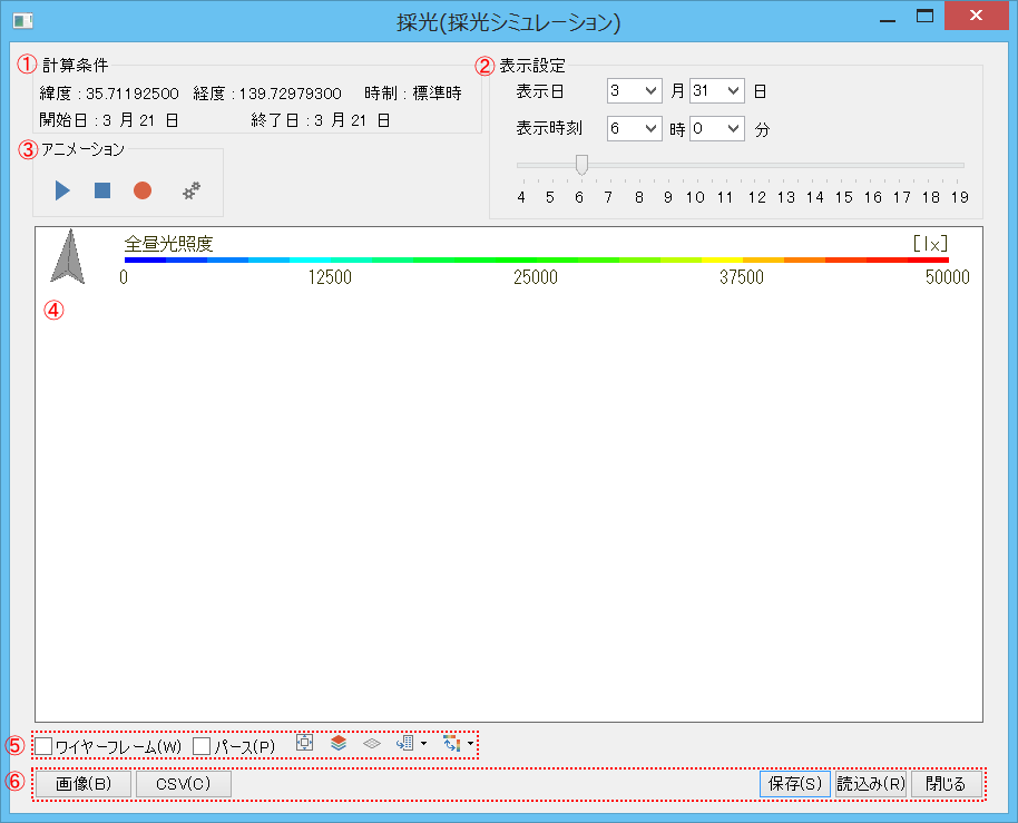 採光シミュレーションダイアログ |