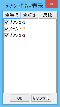 解析ビュー上で表示するメッシュの表示/非表示状態の設定を行います。