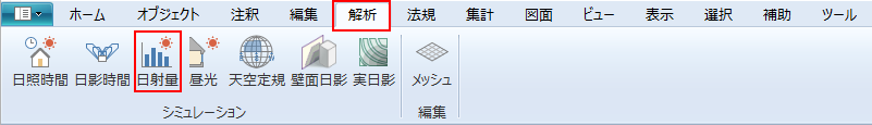 リボンメニュー[解析]→[日射量]