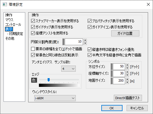 環境設定、階設定などのダイアログは、[OK][キャンセル]ボタンでコマンドが終了します。